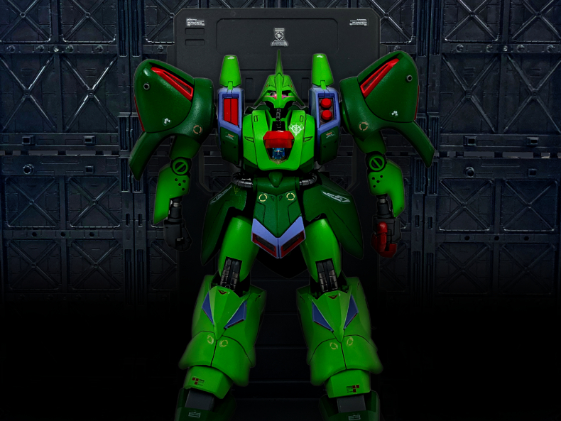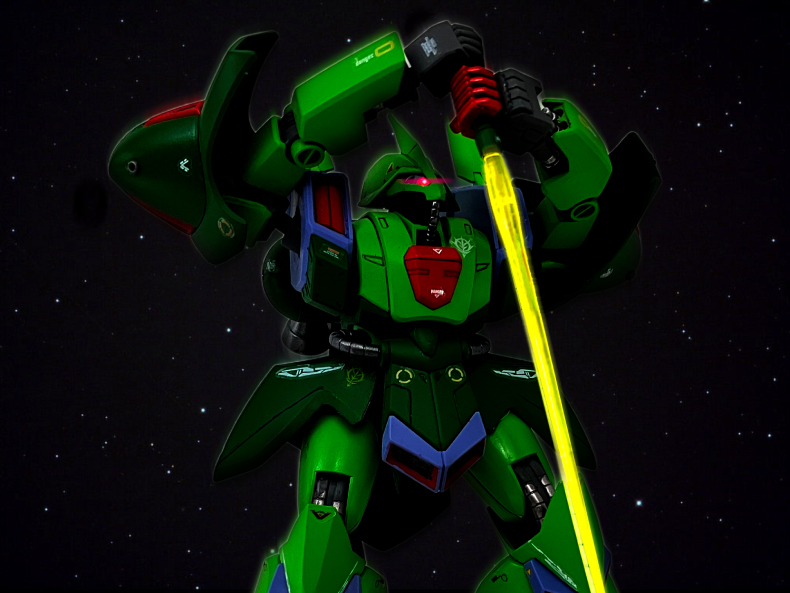 シャープな頭部にマッシブ系の重量感ある機体をザクⅢ改と同じカラーリングでイメージ通り仕上げました。独特な武装のキットはGalleryの画像を様々なポージングで演出出来ます。