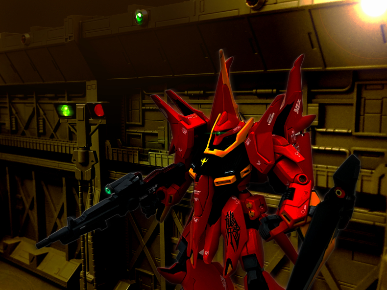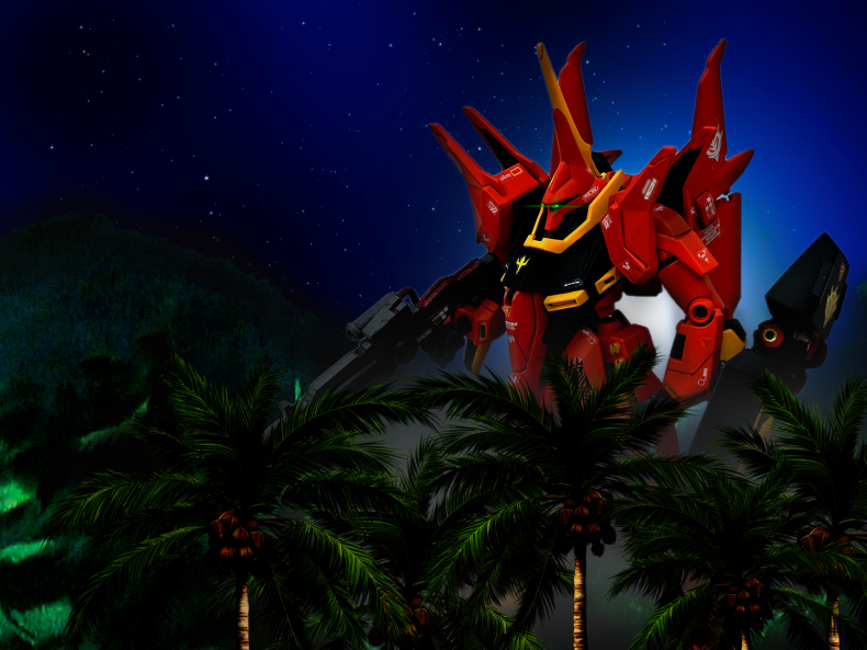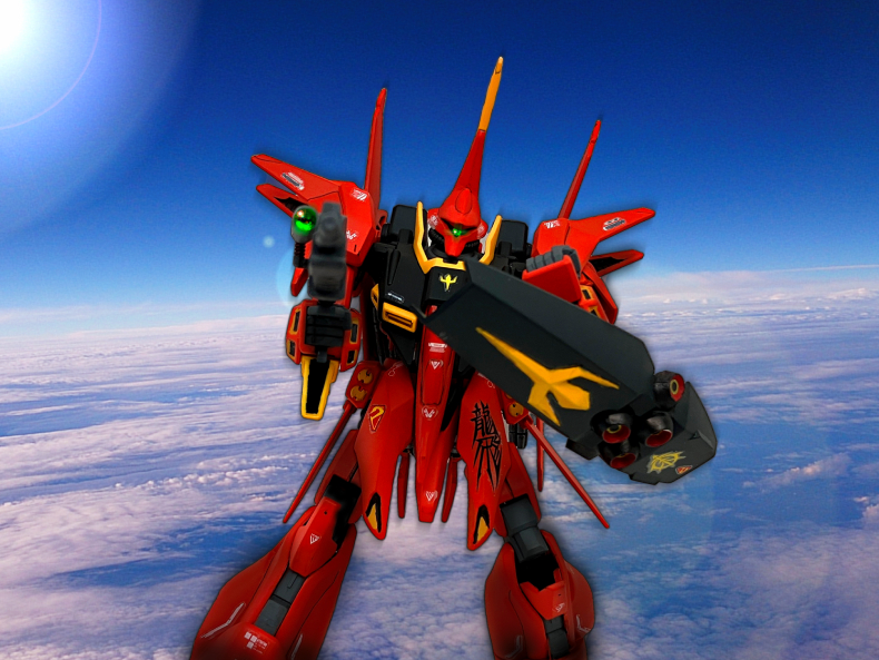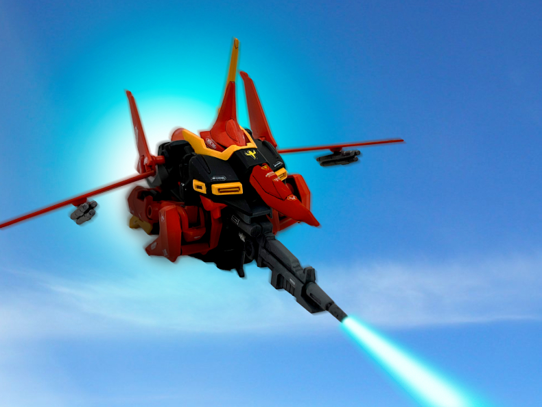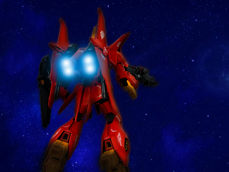 - 組み上げた感想は古いキットの割にはしっかりしたシルエットで、頭部はサザビー、胴体はゼータガンダムというオレンジカラーの異色のMSといった印象です。