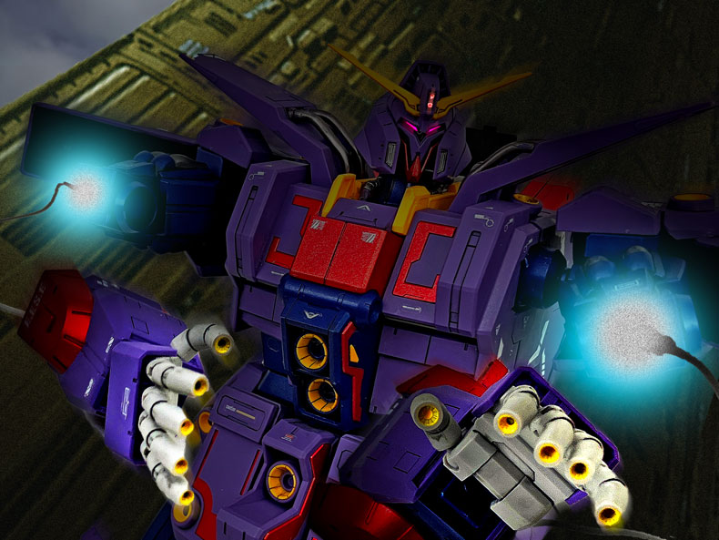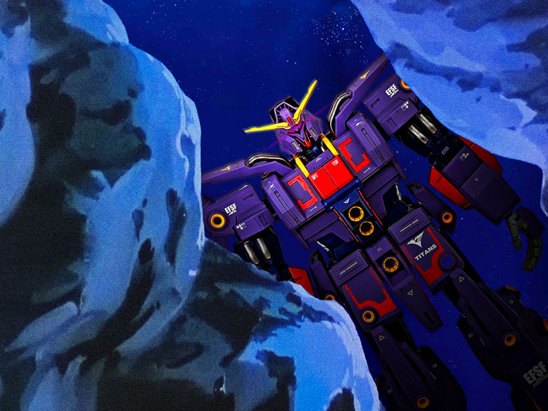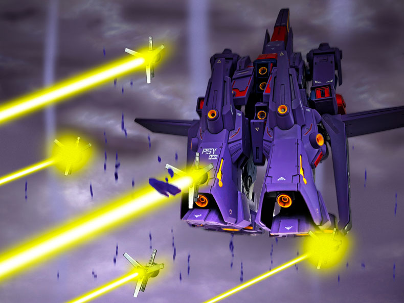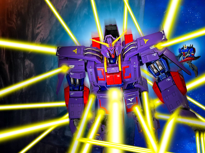 ちなみにこのサイコガンダムMk-Ⅱは「機動戦士Zガンダム」では地球連邦軍のニュータイプ研究所であるムラサメ研究所が開発しており、「機動戦士ガンダムZZ」ではアクシズ(後のネオ・ジオン軍)が鹵獲して改修した機体として登場しています。このため、EFSFやTITANSのロゴを貼るということは「機動戦士Zガンダム」仕様を選択するということになり、Galleryの「機動戦士ガンダムZZ」のシーンはこれらのロゴを画像修正する必要があります。