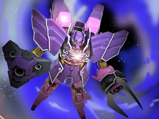 バラのMSとも呼ばれるローゼン・ズールは極端ないかり肩に、長い足、ハイヒール、そしてバラの花びらのようなサイコ・ジャマー・・・・などこれまでのMSのなかでも異彩を放っています。ある意味、兄貴分のシナンジュよりもカッコイイ、いや美しいプロポーションと言えるかもしれません。 |