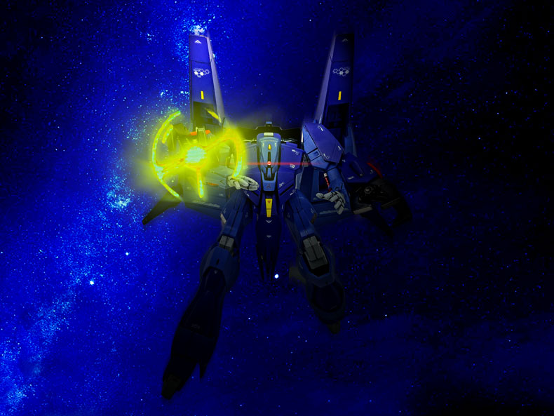 武装にはメガ粒子砲、ビーム・サーベル、9連装ミサイルポッドなどが搭載されており、腕部クローにはグレネード・ランチャーが装備され、高い攻撃力を誇ります。